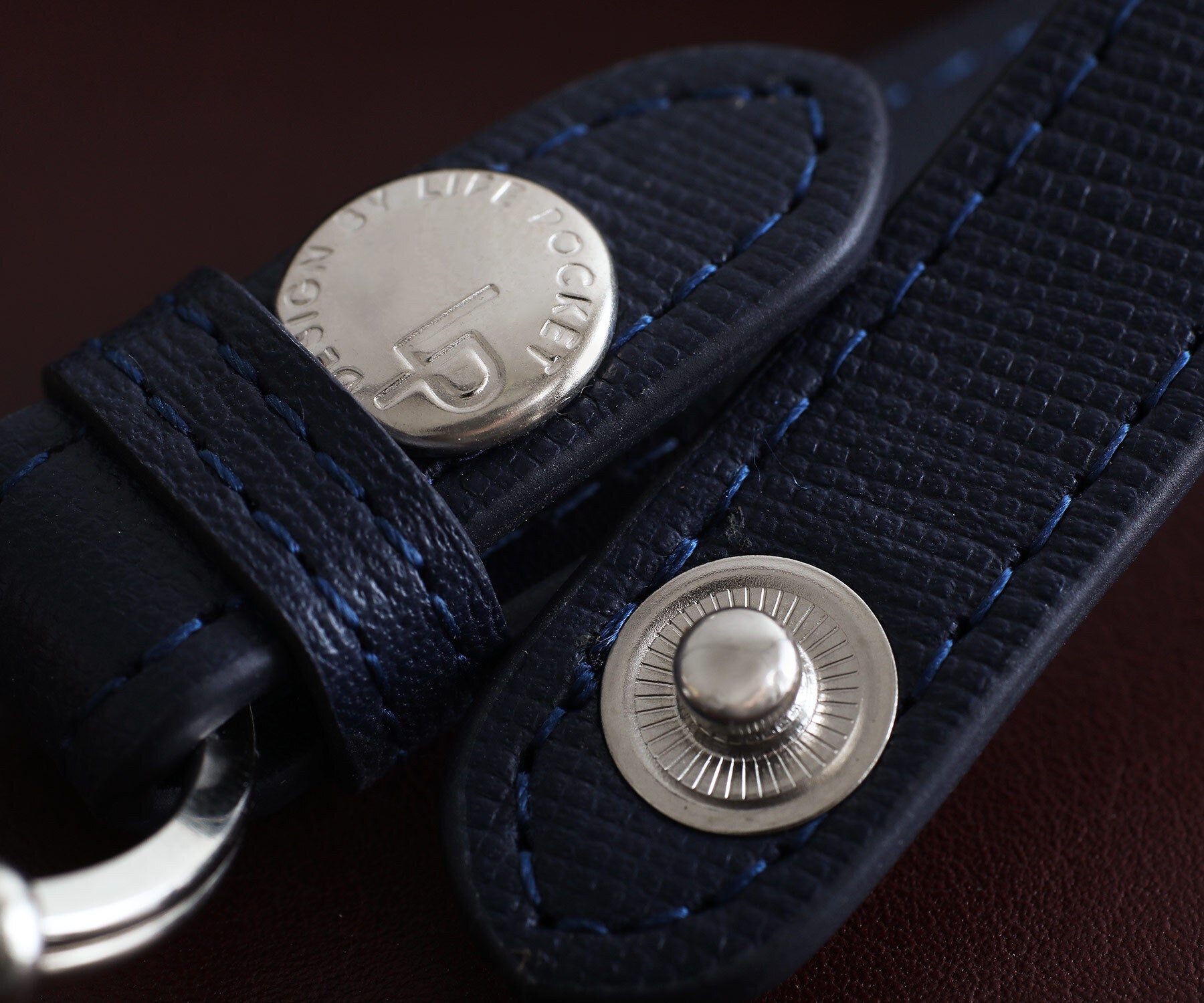 特別なレザーにシンプルなステッチラインをデザインしたパーツの数々。 その見た目からは想像できないほど高機能なキーリングです。
