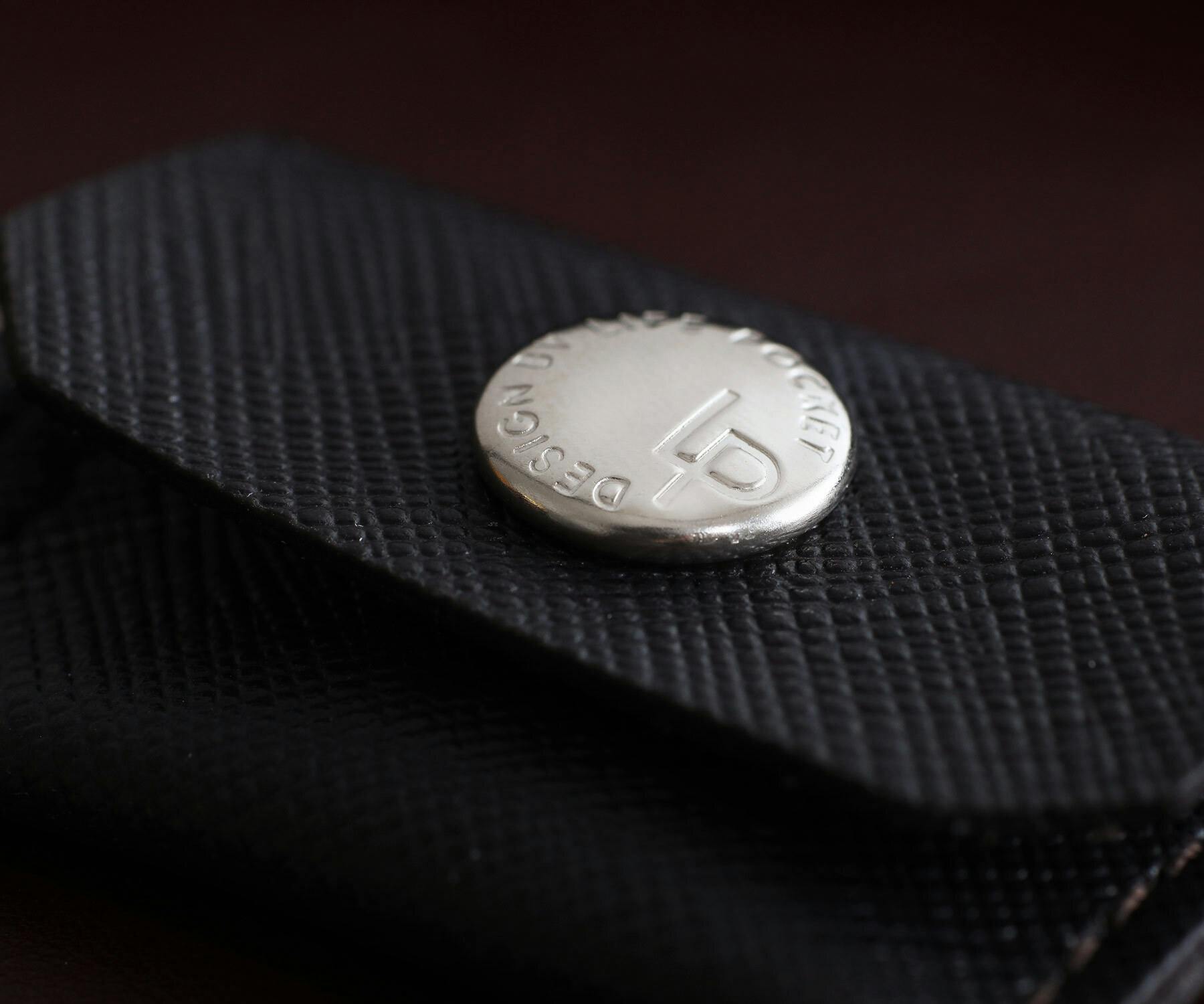 本品には国産メーカーHASI-HATOのスナップボタンを採用しております。この良質なバネは消耗が少なく、“パチン”という心地よい音とともにスムーズに開閉できます。