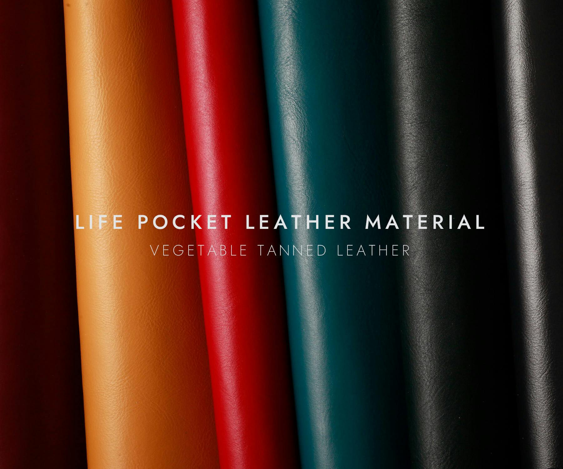 LIFE POCKET製品のベジタブルタンニンレザーは、天然植物(草や木の汁)から抽出したタンニン(渋)を使って皮をなめす方法で生成されたレザーです。植物から採れるタンニンで鞣されたレザーは、革らしい質感や優れた耐久性、弾力性が魅力です。