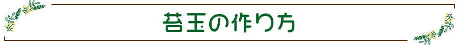 一般的に苔玉(コケだま)とは、植物の根を用土でまるく球状に包み、その周りに苔をはりつけて、糸で固定したもの。
