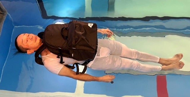 ※1:ライフジャケットには小型船舶用救命胴衣、作業用救命衣、小型船舶用浮力補助具があり、浮力補助具以外は7.5kgの鉄片をつけて24時間浮いていることが条件。浮力補助具は5.85kgの鉄片をつけて24時間以上浮いていることが条件。フロートライフリュックは浮力が6.2kg程度なので、浮力補助具の浮力以上を有する。