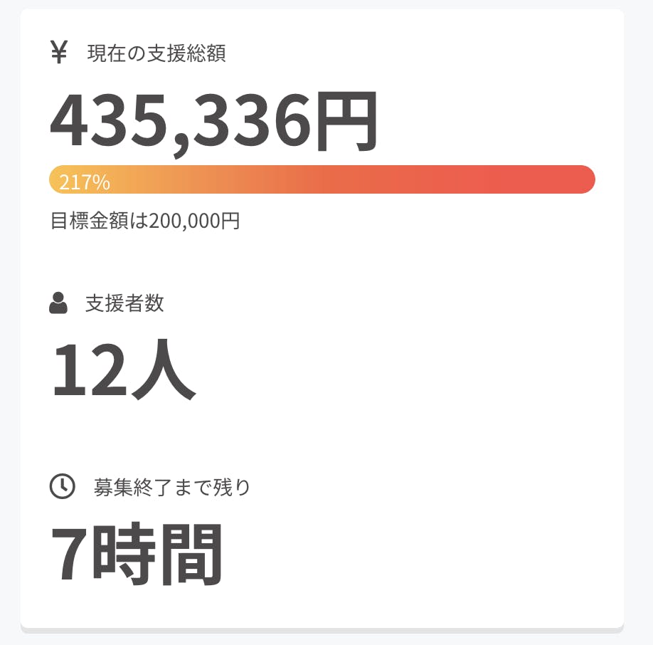 2022/10/20 16:40ご支援いただきありがとうございます!とうとう本日、10月20日が最終日となりました。おかげ様で、目標を200%以上達成することができました!!ご支援いただいた皆様、本当にありがとうござます!そして、まだ数時間ございます。お気に入りにいれてくださった皆様、是非この機会に「フロートライフリュック」を宜しくお願いいたします!! もっと見る