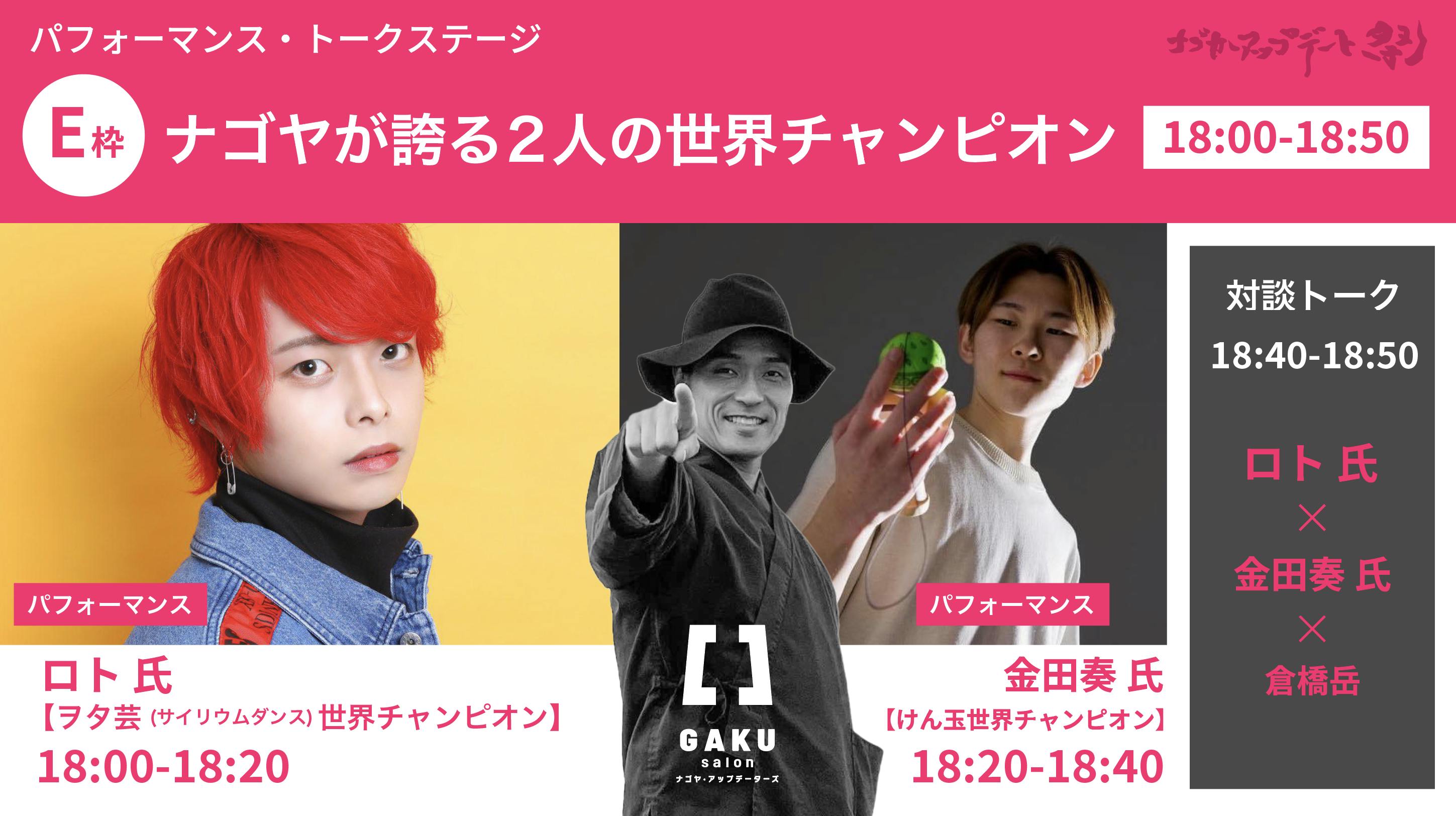 2022/12/17 09:39ステージチケットE枠は【ナゴヤが誇る2人の世界チャンピオン】ヲタ芸世界チャンピオン ロト氏、ストリートけん玉王者金田奏氏お二人の世界チャンピオンのパフォーマンスと対談トークです。オリジナル技、[ロトの紋章]で全世界のヲタ芸プレイヤーから知られる存在のロト氏、Kendama World Cup 2017年大会で、史上初の日本人チャンピオンに輝いた金田奏氏、世界チャンピオンの技を目の前で見られるチャンスなかなかありません!対談トークもありますので、ぜひ会場でご覧になってください!他にもこんな素敵なステージ用意しています。 もっと見る