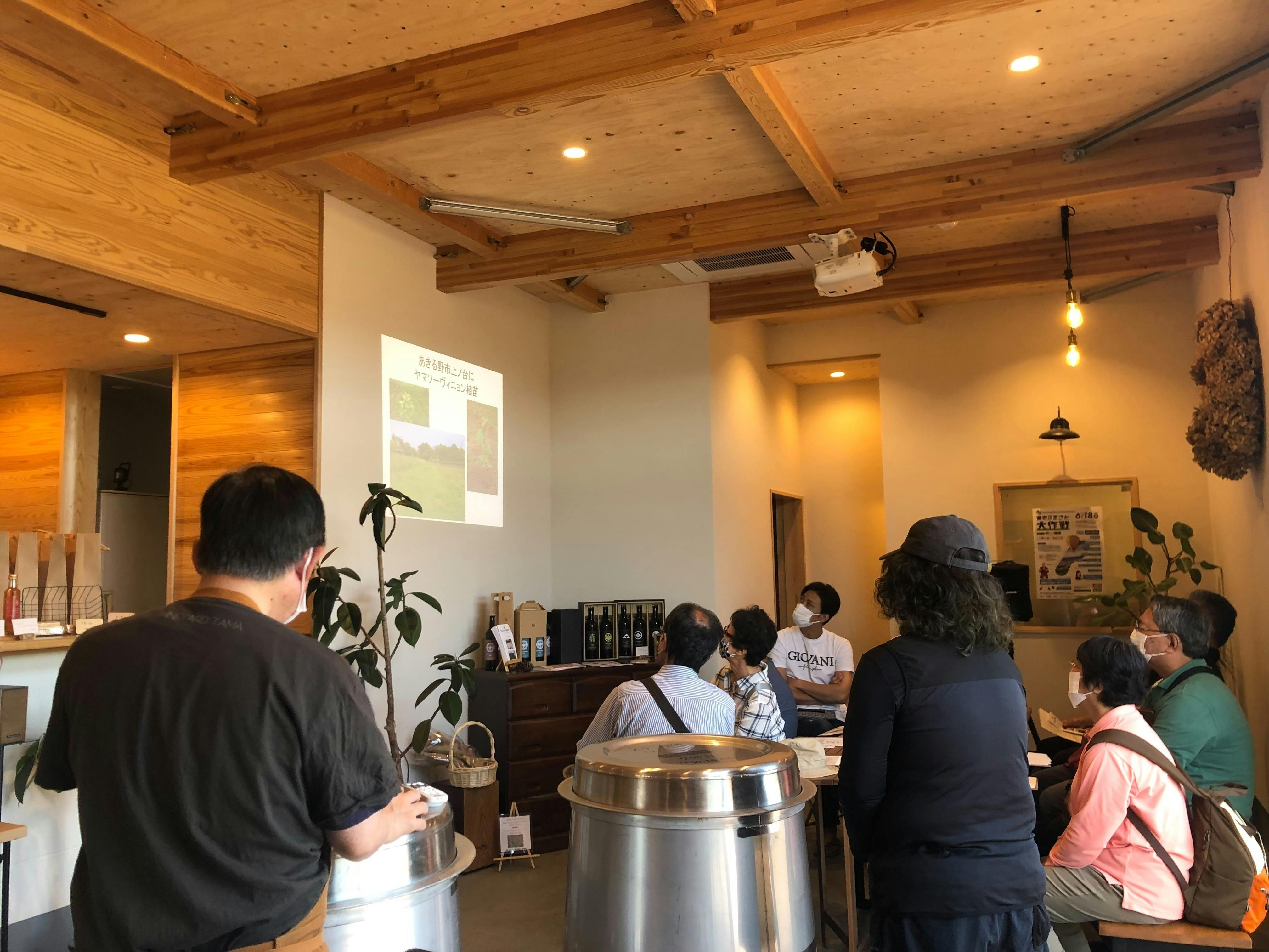 私たちは、この「ワイン(和飲)」 を通してあきる野市に沢山の人が集まり、新たな出会いの場として提供できるような空間作りをするのが願いです。