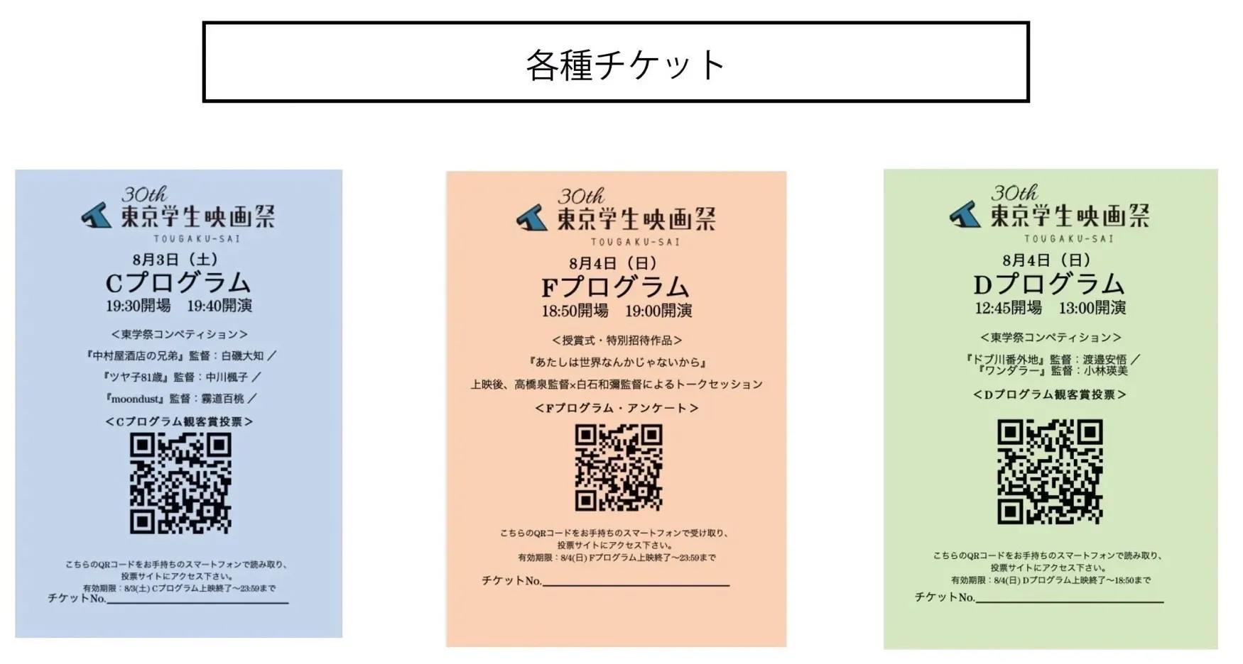 なお、すべてのチケットの有効期限はプログラムの上映日当日に限ります。