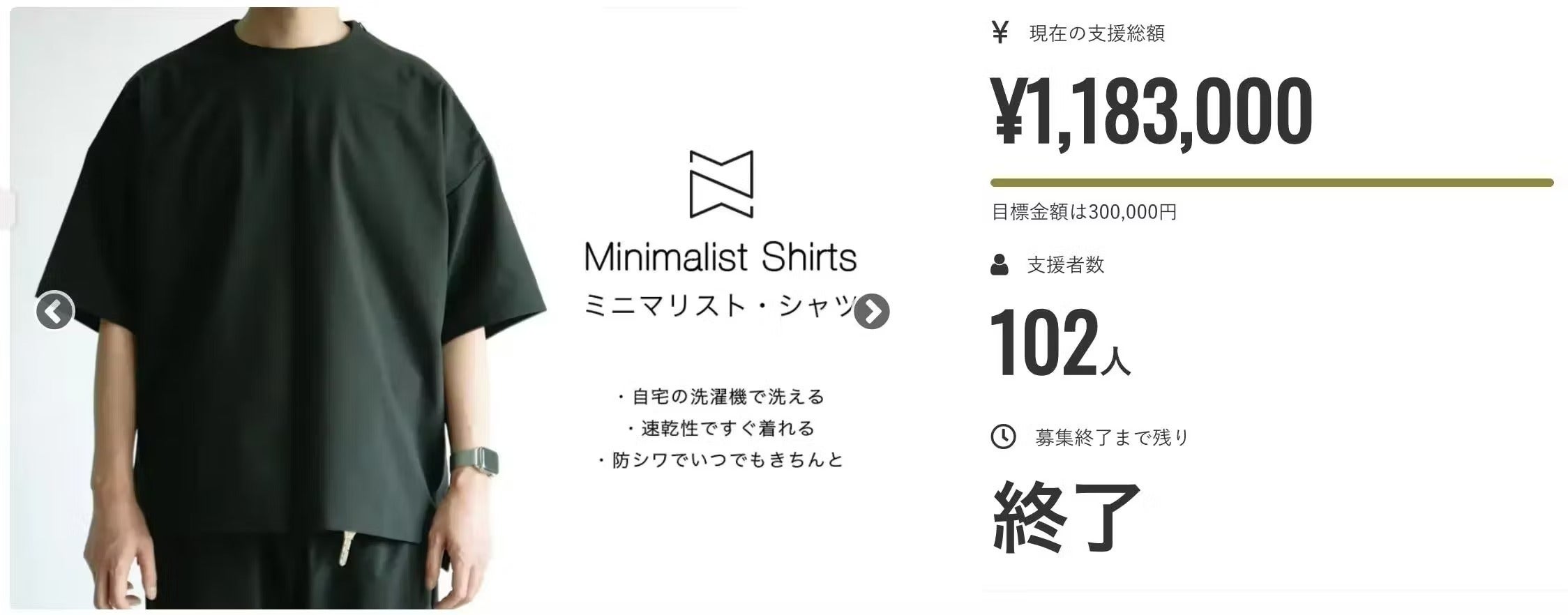 昨年のMinimalist Shirts SS / Blackは昨年、CAMPFIRE、machi-yaとそれぞれのプロジェクトでたくさんの方に支援いただくことができました。今回は、新色のグレーを追加することでコーディネートの幅を広げることができます。