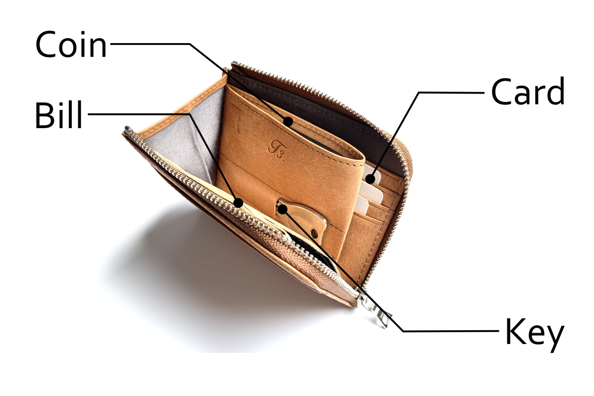 3:紙幣、小銭、カード、鍵が全て入る多機能性