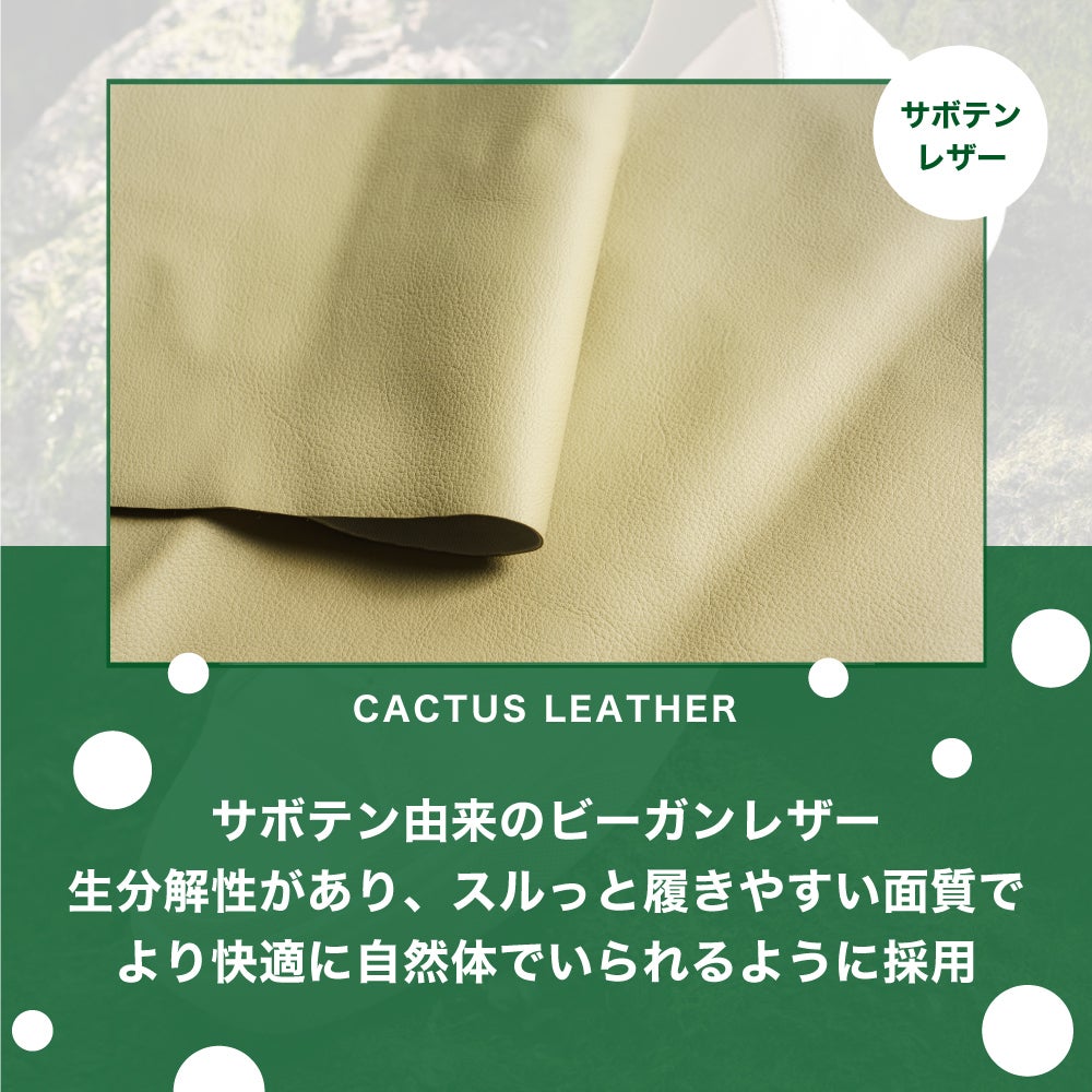 サボテン由来のビーガンレザーを履き口に採用しています。