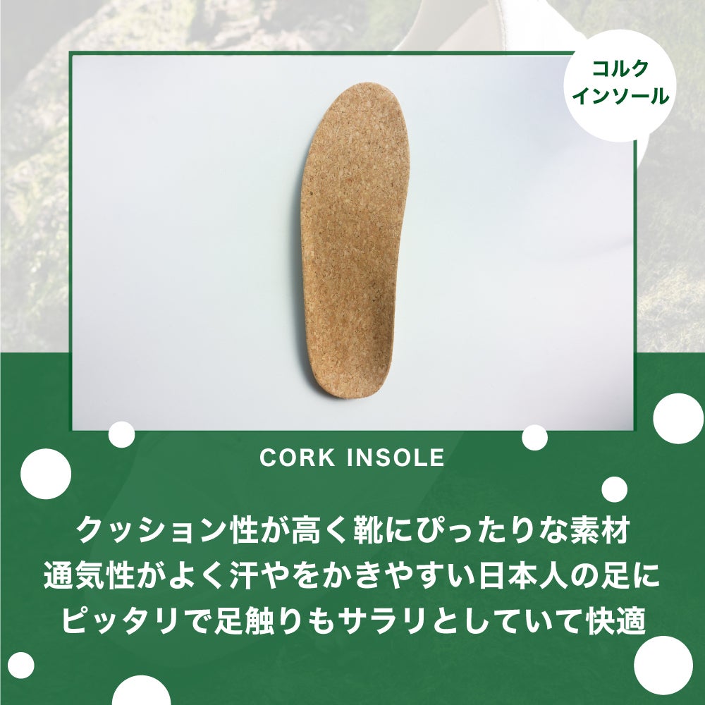 履き心地が良くエコなコルクインソールは、ふかふかな歩き心地で足をニュートラルに
