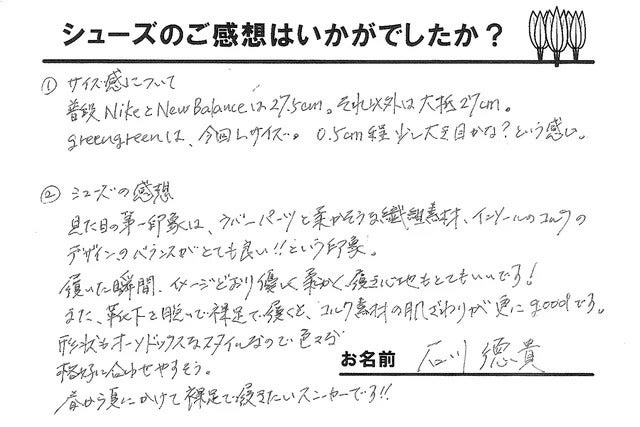 渡辺様(男性/アパレル販売員/普段のスニーカーサイズ:28cm/テストした製品サイズ:L)