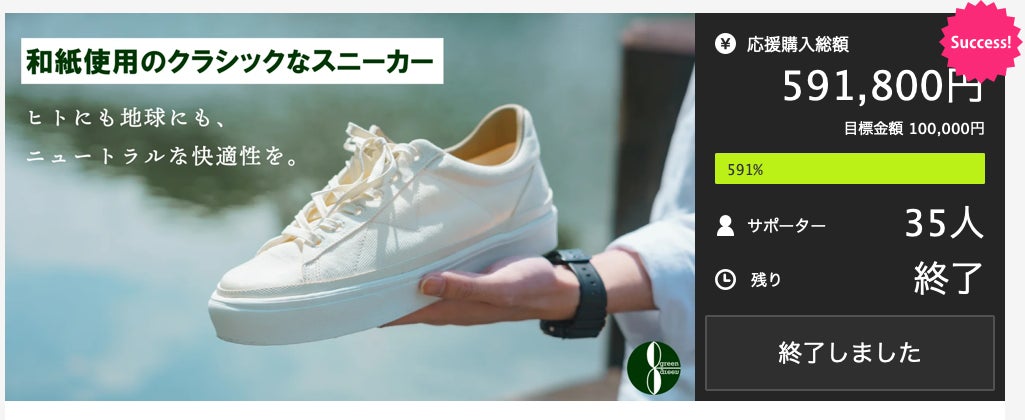 国内クラウドファンディングで目標金額590%を達成した和紙シューズ!
