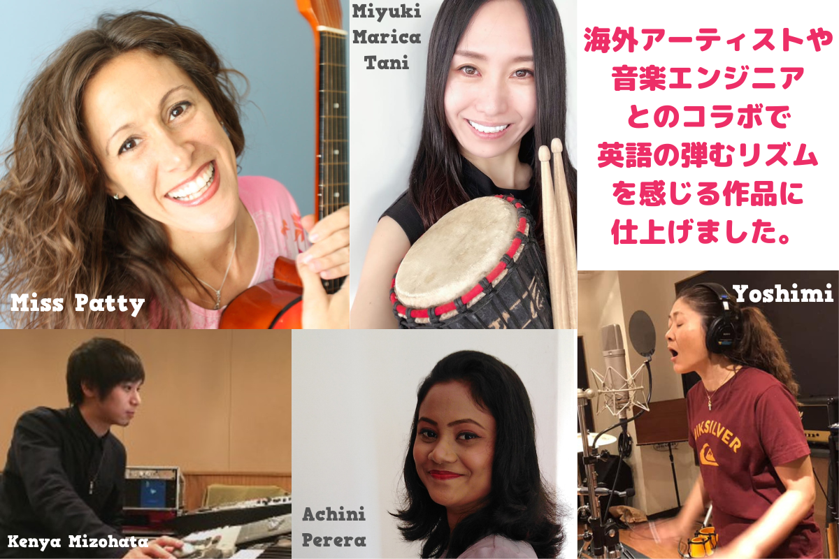「英語本来の弾むリズム」を持った音楽を作るために、アメリカで活躍するアーティストMiss Pattyからの楽曲提供や、アメリカ在住のアーティストMiyuki Marica Taniによる編曲をお願いしました。