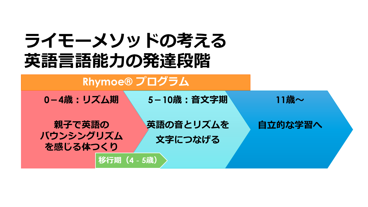 Rhymoe Phonicsのリリースに伴い、0歳(親子)から小学生まで指導できる、一貫した英語教育カリキュラムを示すことができるようになりました。