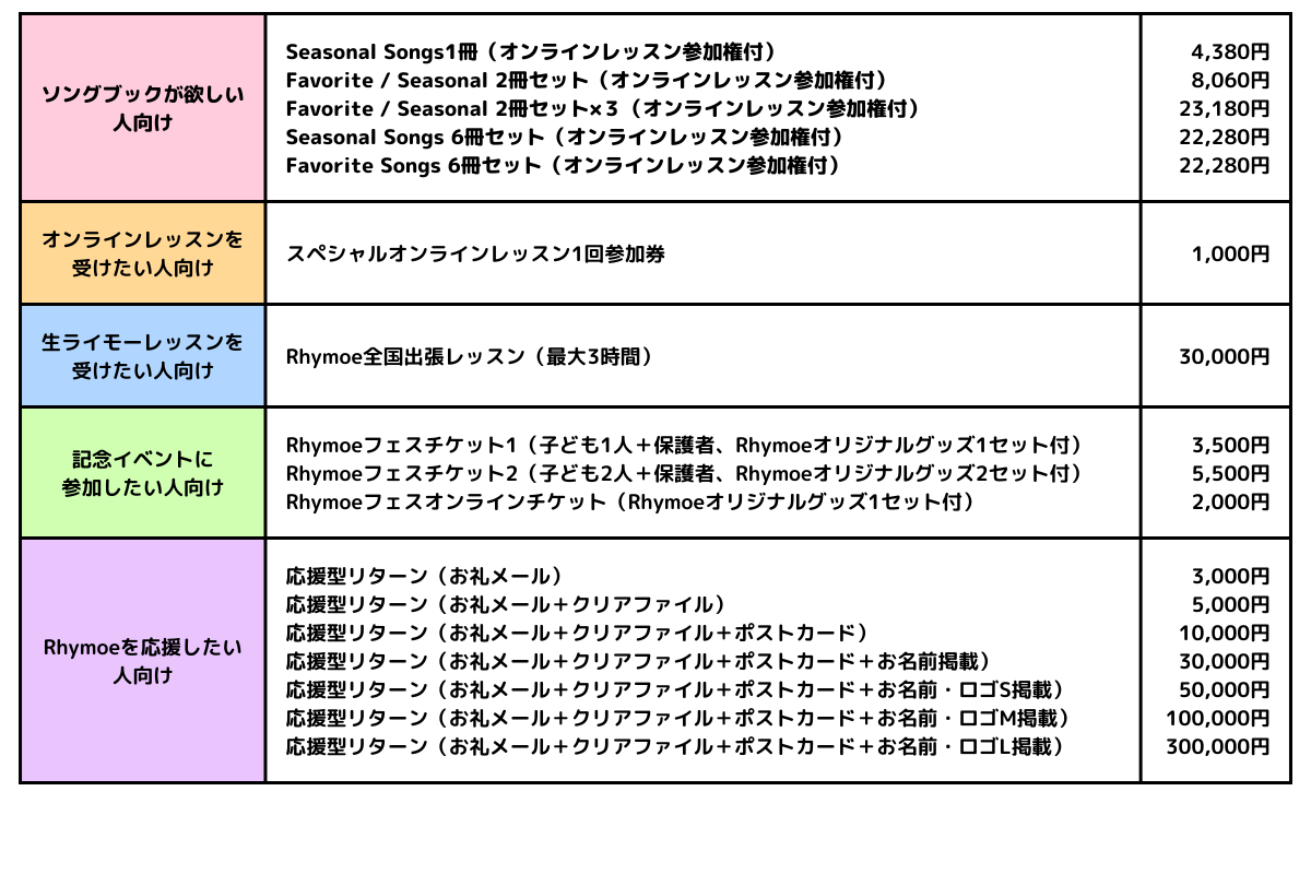 ソングブック第1弾「Rhymoe Favorite Songbook えいごのリズムがたのしいうた」発売時のクラウドファンディングで、レッスンやイベントを通じての、ご支援下さった方との交流は、クリエイターである私にとってだけでなく、認定インストラクターや、Rhymoeトレーニング修了講師の皆さんにとっても貴重な体験となりました。