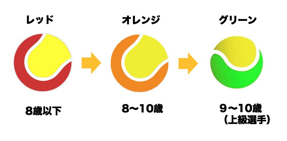 オレンジボールテニスはゆっくり弾み取り扱いやすいのが特徴です。また、コート面積が通常の約4分の3と小さく、コートカバーがし易くなり、ラリーがたくさん続き、ゲーム性が高まりテニス本来の楽しさを学べます。子供の身体能力、運動能力が著しく発達する「ゴールデンエイジ」と呼ばれている小学生世代にとって、オレンジは重要なステージといえます。