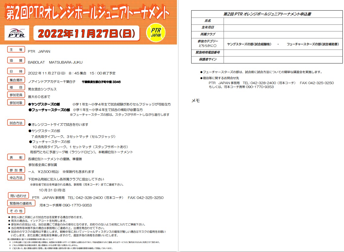 PTRが大切にしている言葉の一つに「Continuity(継続)」という言葉があります。このオレンジボール大会を続けていくことで子供たちに、「テニスは楽しい」という事を知ってもらい、テニスで知り合った友達と交流を深め社交性を高められる様な、そんな子供たちのコミュニティーの場としてこのイベントが継続出来たらすごく素晴らしいことだと思います。