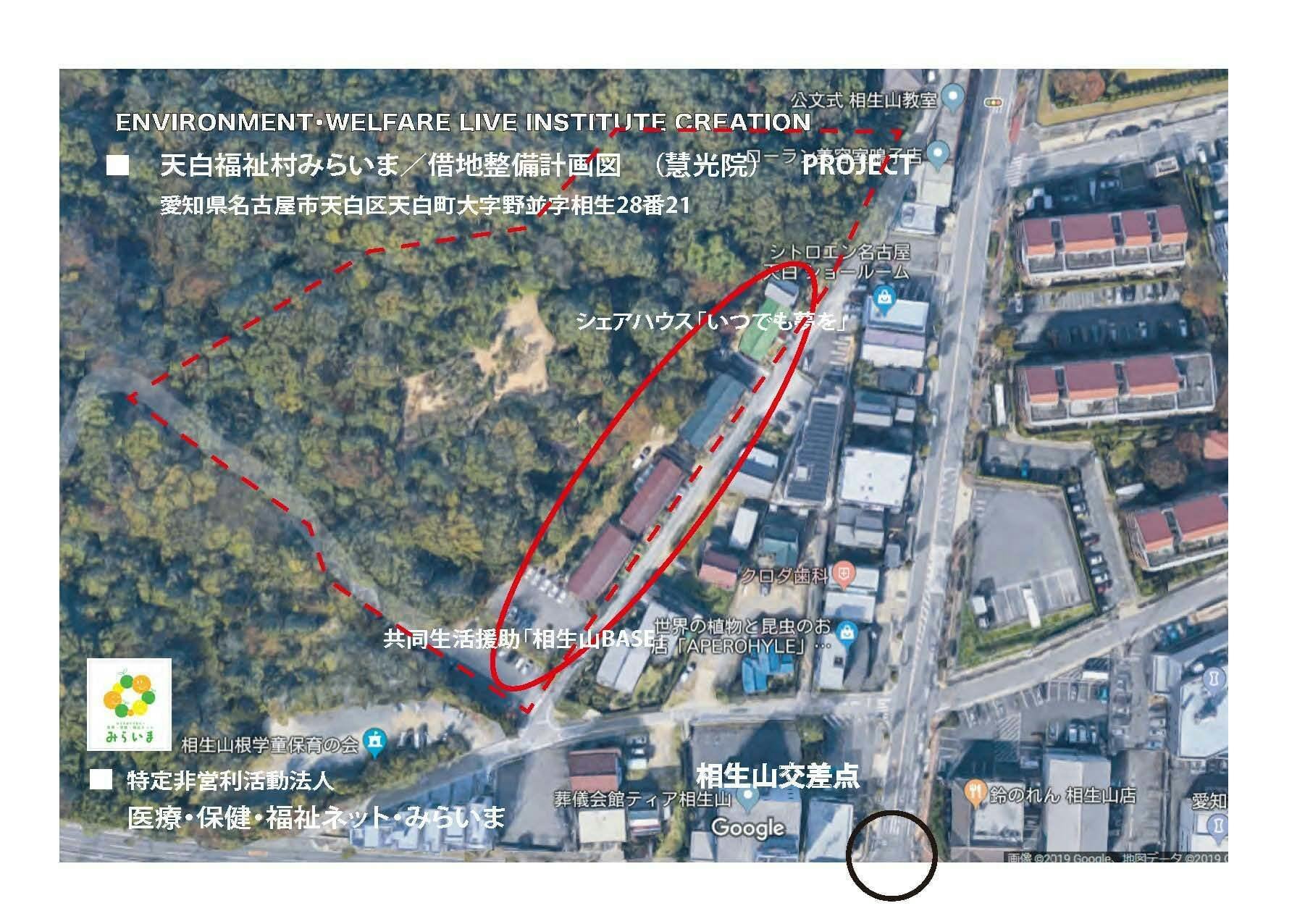 グループホーム建設地は、名古屋市天白区あいおい山の近くです。地下鉄の駅も近く都会的な場所ですが、近くに大きな公園や森もあり自然も多く残っています。