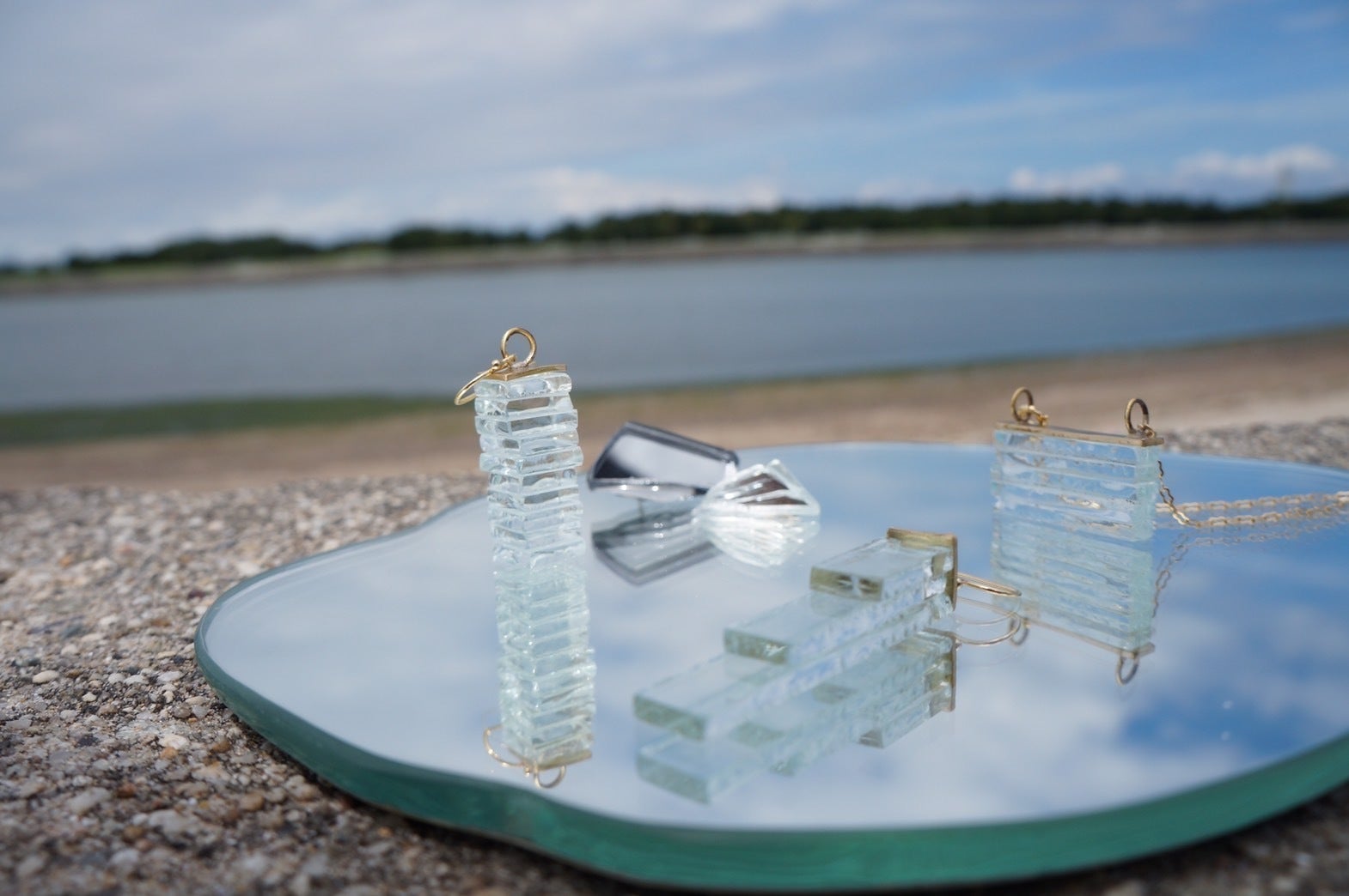 ①ガラスの割れたカタチをそのまま活かしたアクセサリー「asitis(アシティス)」ガラスは割れるもの。ひとかけらも同じに割れる事はなくカタチもそれぞれ。多様性が当たり前な今の時代を象徴するアクセサリー