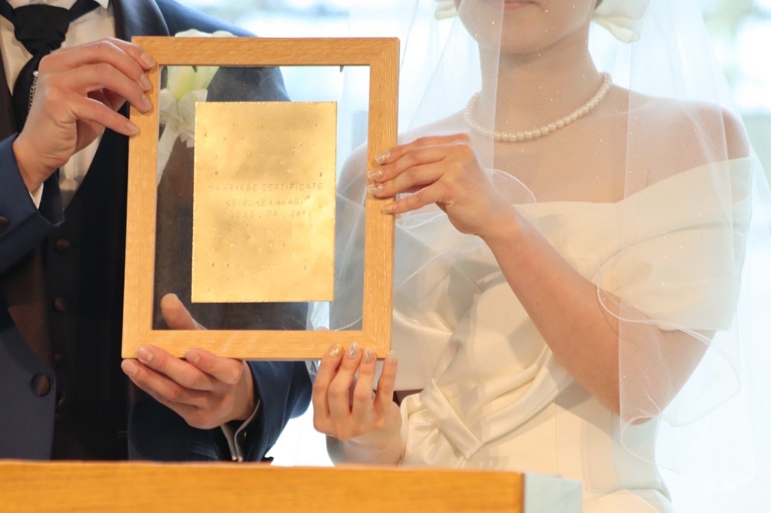 真鍮結婚証明書は木とガラスのフレームに入れて完成するものでして、木枠は木工作家さんに、ガラスは津田ガラスさんにお願いして作っていただいております。