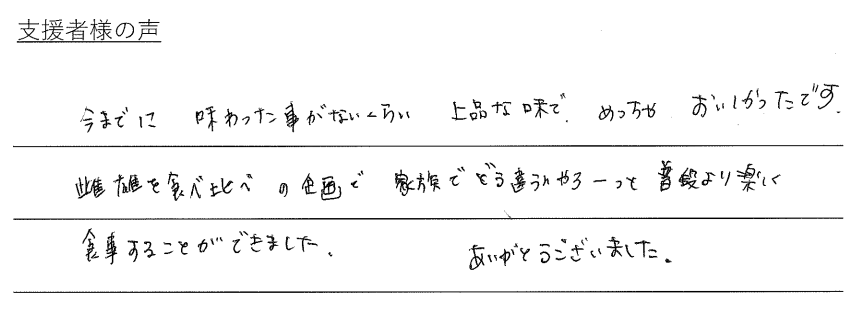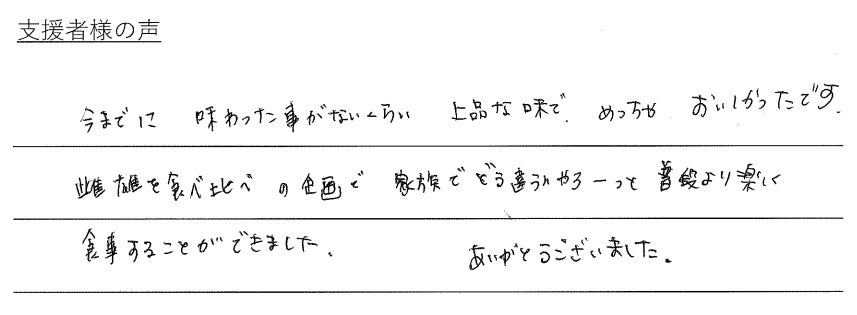また、ご支援のみならず、あたたかいお言葉をいただきました。