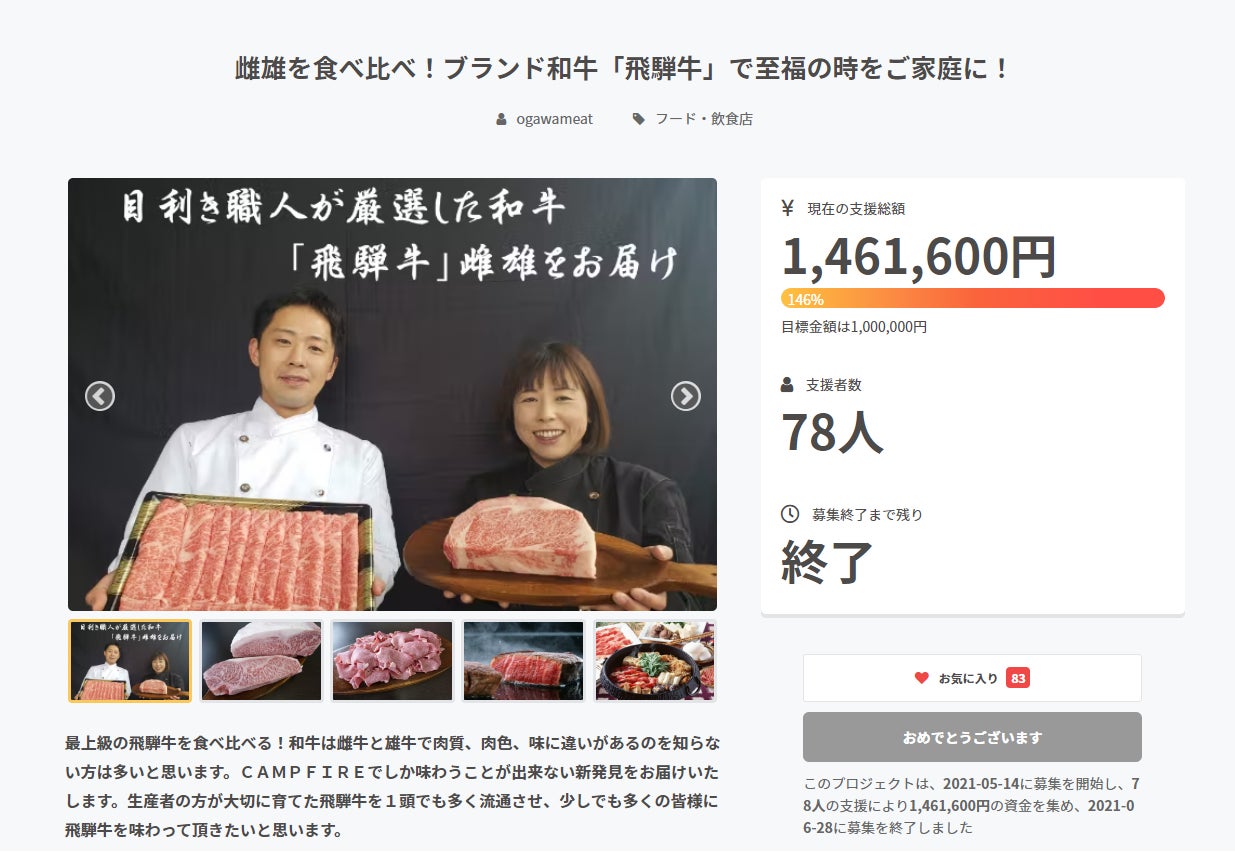 第1弾プロジェクト、雌雄を食べ比べ!ブランド和牛「飛騨牛」で至福の時をご家庭に!では、78名もの支援者様に多大なるご支援を頂き、本当にありがとうございました。
