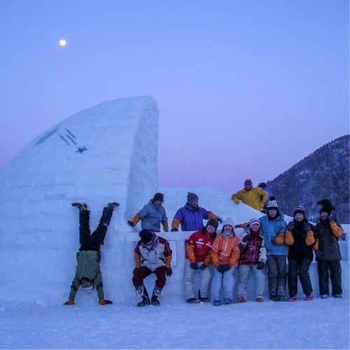 しかりべつ湖コタンの始まりは1980年。若者3人が冬の然別湖で楽しく遊ぶために、凍った湖の上にイグルー(カナダやアメリカに住むイヌイットが狩猟時に使う仮住まい)を作り始めました。1982年には、この動きを知った湖畔のホテル経営者や鹿追町も協力してイグルー3戸を作り上げ、第1回「しかりべつ湖コタン」が開村(同年実行委員会設立)。翌年その様子がテレビ放映されたことをきっかけに、地域の若者がこの「究極の冬遊び」に関わりたいと多数集まりました。