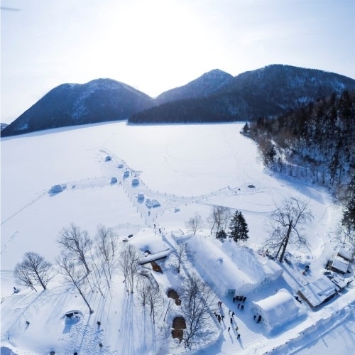 然別湖は、北海道十勝管内の鹿追町と上士幌町にまたがり、大雪山国立公園内にある唯一の自然湖で、標高810mに位置し天空の湖とも呼ばれています。ここに毎年冬の間だけ、幻の村「しかりべつ湖コタン」が現れます。コタンとはアイヌ語で村または集落などを意味します。