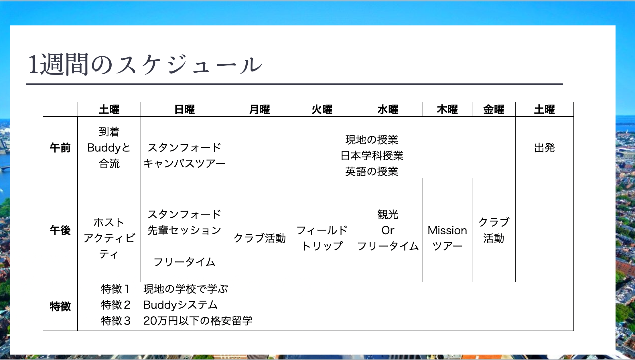 今回のプログラムでは、は現地の高校で学んだり、JALの格安航空ZIPAIR、ホームステイを活用する、クラウドファンディングの支援で格安留学を実現したいと思っています。