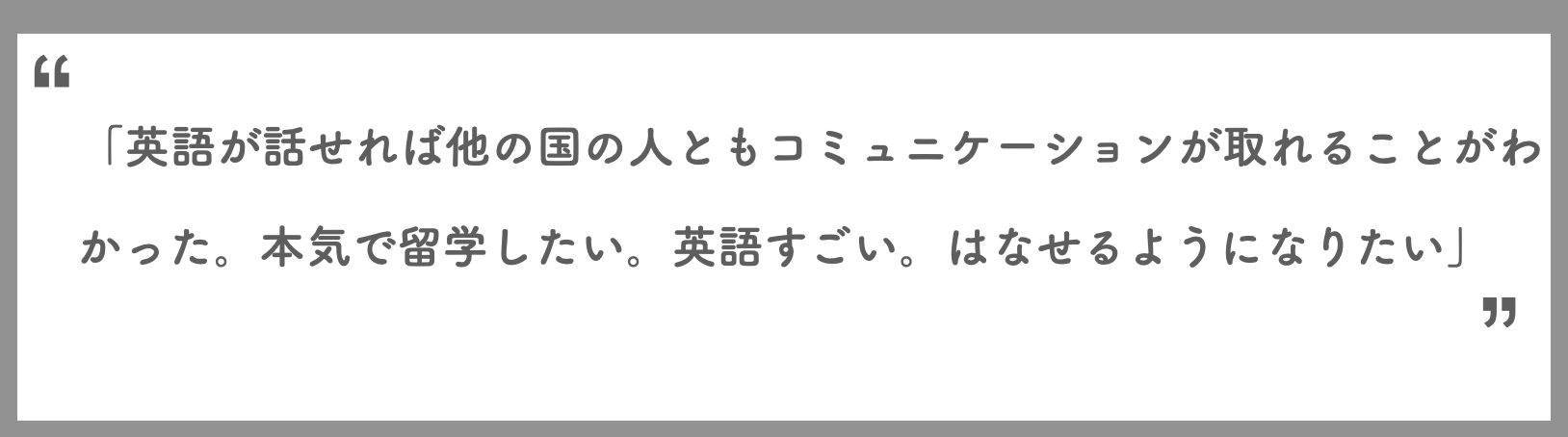 学習指導要領の改正で英語教育の導入早まり、 現在は小学生3年生から英語を学んでいます。 しかし、日本にいると英語を使用 しなくても生活できます。 英語学習が早まったのと同時に、 「なぜ英語を学ぶのか」 「英語を学ぶとどんな良いことがあるか をできるだけ早く体感することが大事であると考えています。