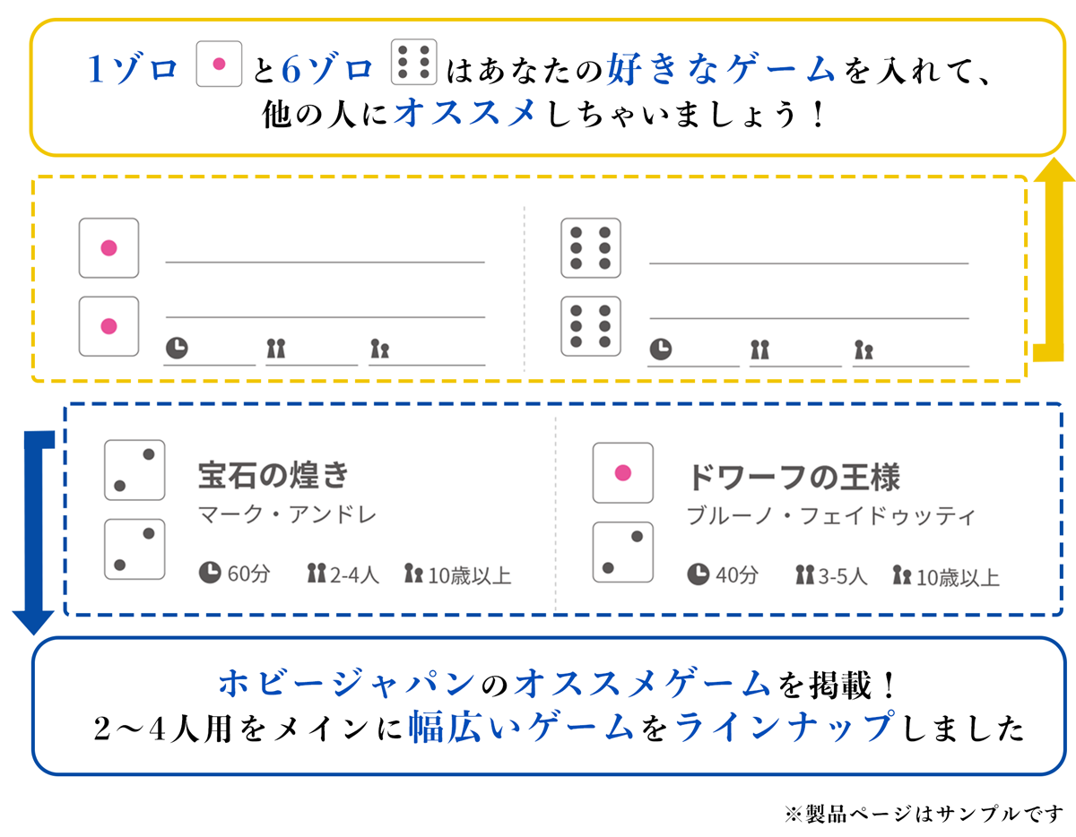 また、1と6のゾロ目は空欄にしていますので、お好きなゲームを書き込んで自由にカスタマイズが可能です。