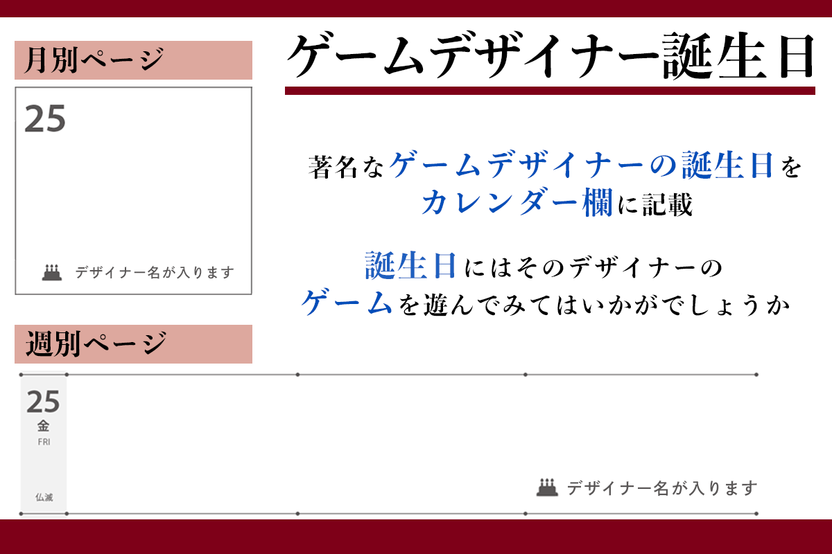 ●著名なボードゲームデザイナーの誕生日を掲載(月別/週別ページ)