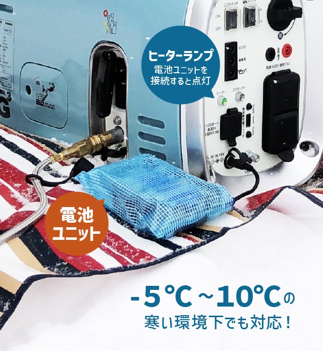 「クレマ」はガス気化を促進するために、気化器を温めるヒーターを内蔵しています。事前に予熱ができることで、-5℃の環境からでも一発始動が可能に。寒い冬も寒冷地でも問題なく発電できるように考えられた機能を搭載しているのです。