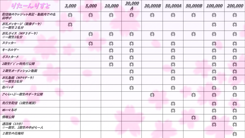 ┗1期生には花がついている為同じ花の際は別の花のお願いをさせて頂きます