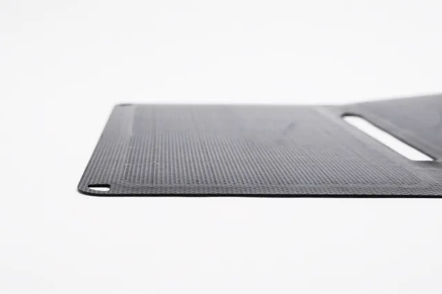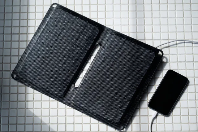一般的なガラスとアルミフレームで作られた持ち歩ける太陽電池は、まだまだサイズが大きく、分厚く、重く、割れるリスクもあり持ち運びも大変。それだけで1つ荷物が増えてしまいます。