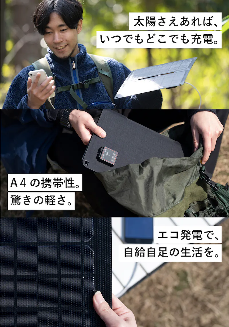 アウトドアがブームになり、持ち運べる太陽光発電の需要があることはわかっていました。しかし安全性を追求しつつもコンパクトで実用性に足る発電効率を実現し、手にとりやすい価格の商品はまだ珍しい存在でした。