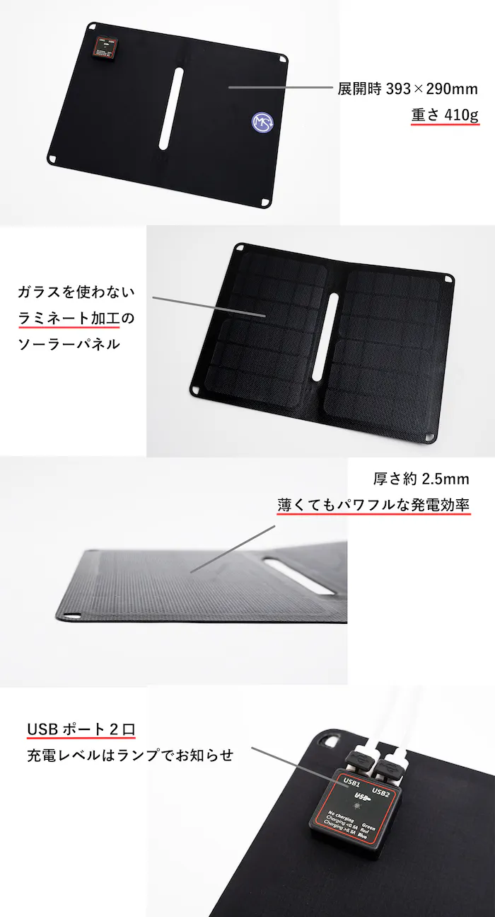 太陽さえあればどんなところでもスマホを充電でき、いざというときも安心できます。