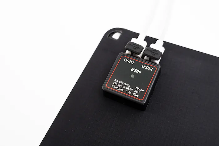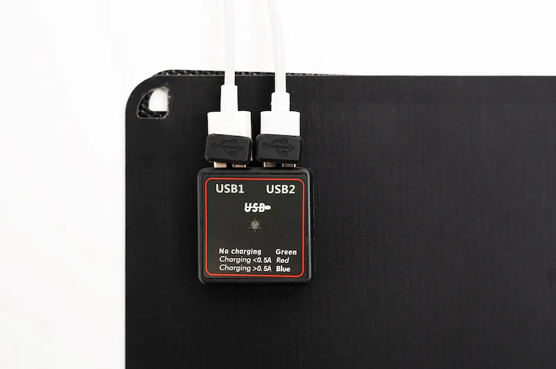 「ペーパー型太陽電池 MS001」には、USBポートが2つ搭載されています。