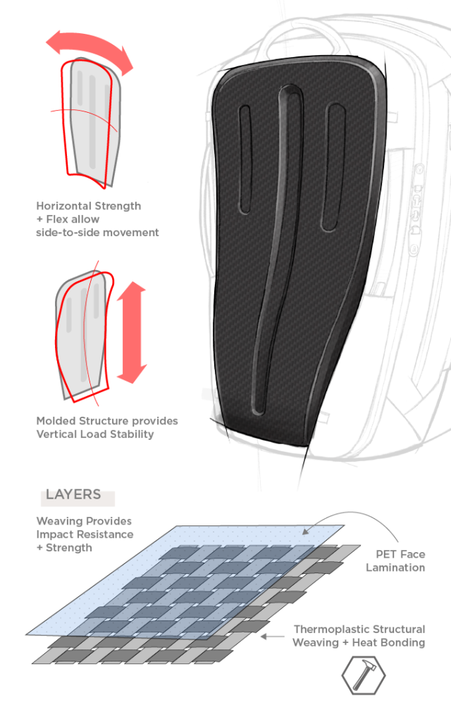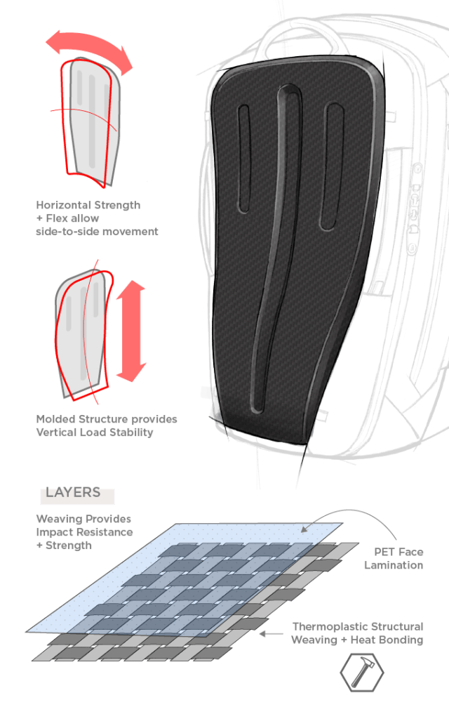 誰でも背負いやすい、ドイツで設計されたCURV複合フレームシートの背面パネル