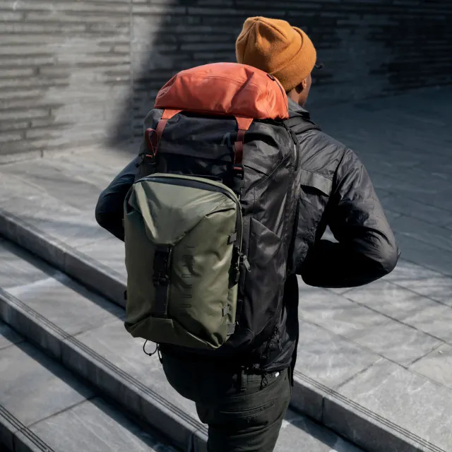 自分好みに容量や形態をチェンジできる新構造のバックパックシリーズです。組み合わせ自由自在で、全部まとめてひとつにすることも可能です。