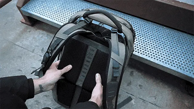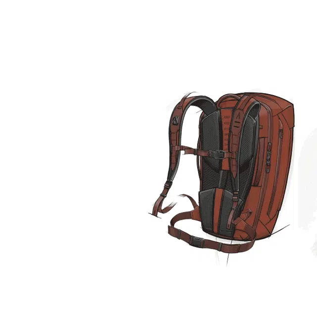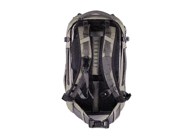 ストラップの中央にある2つのサイドリリースバックルは、メインのストームガードジッパーへの素早いアクセスを可能にします。
