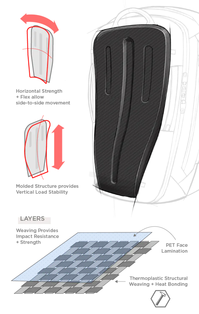 誰でも背負いやすい、ドイツで設計されたCURV複合フレームシートの背面パネル
