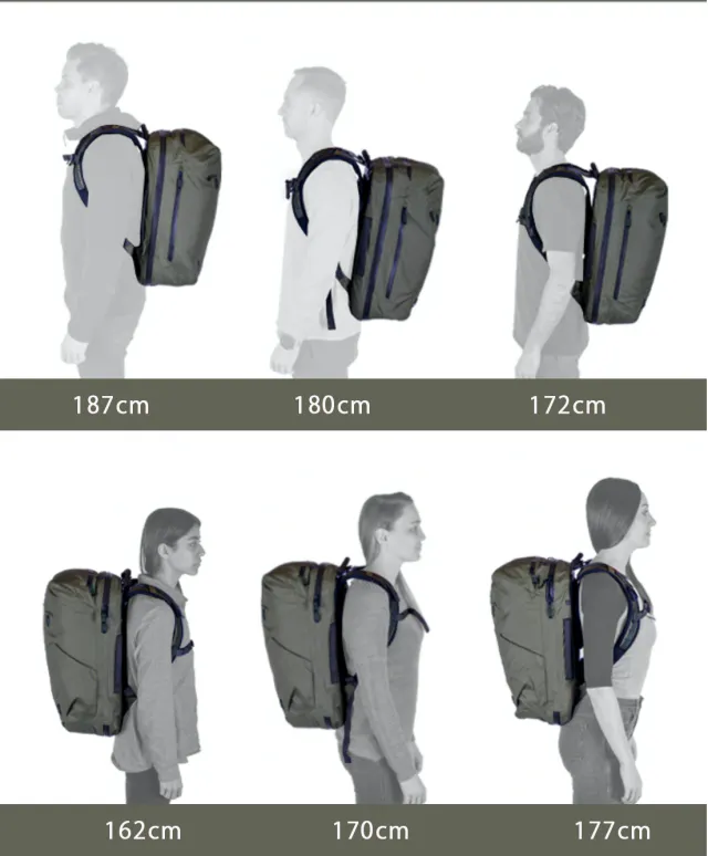人間工学に基づいてドイツで設計された、誰でも背負いやすい背面フレーム。背中のカーブにフィットしており、長時間の移動も快適です。