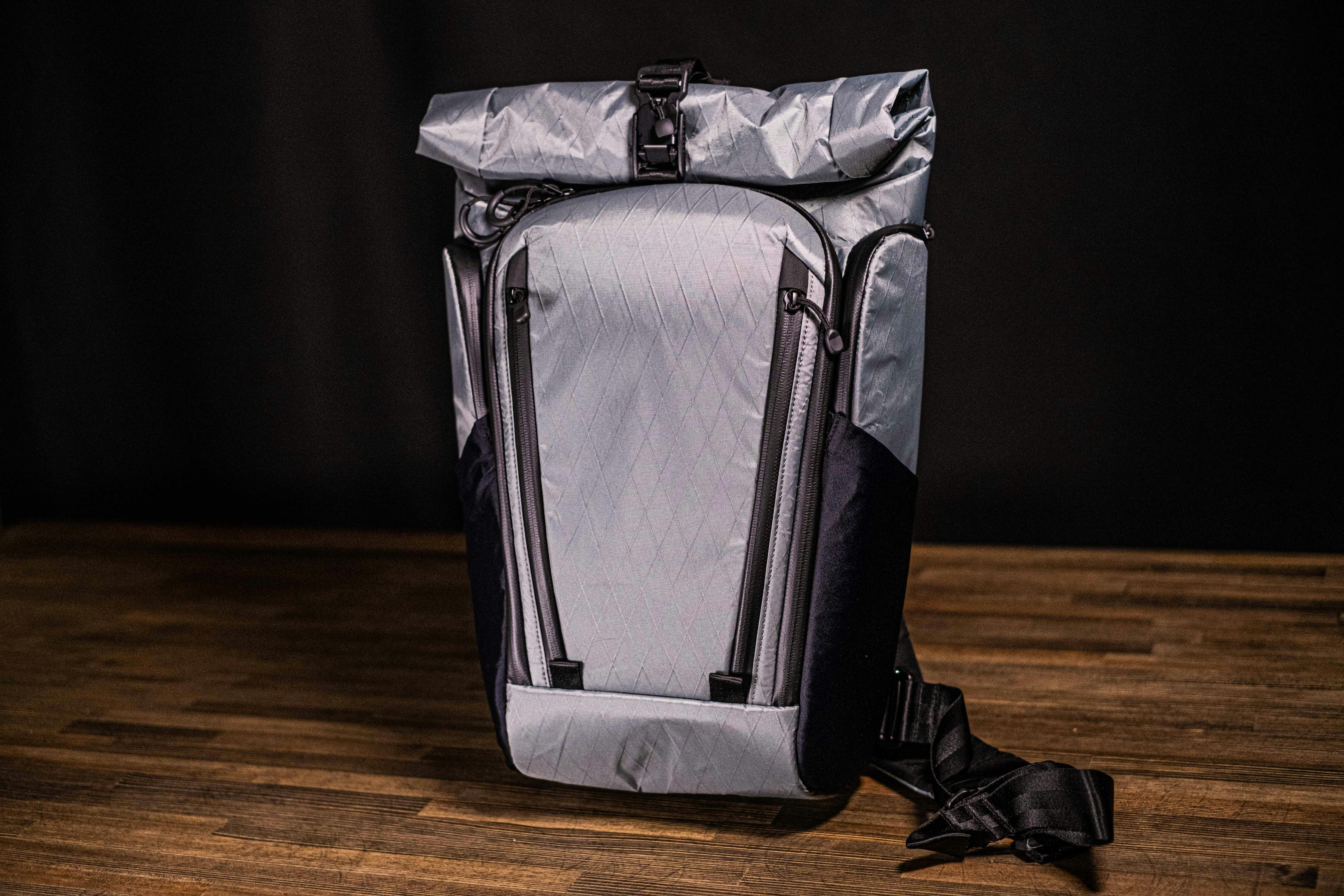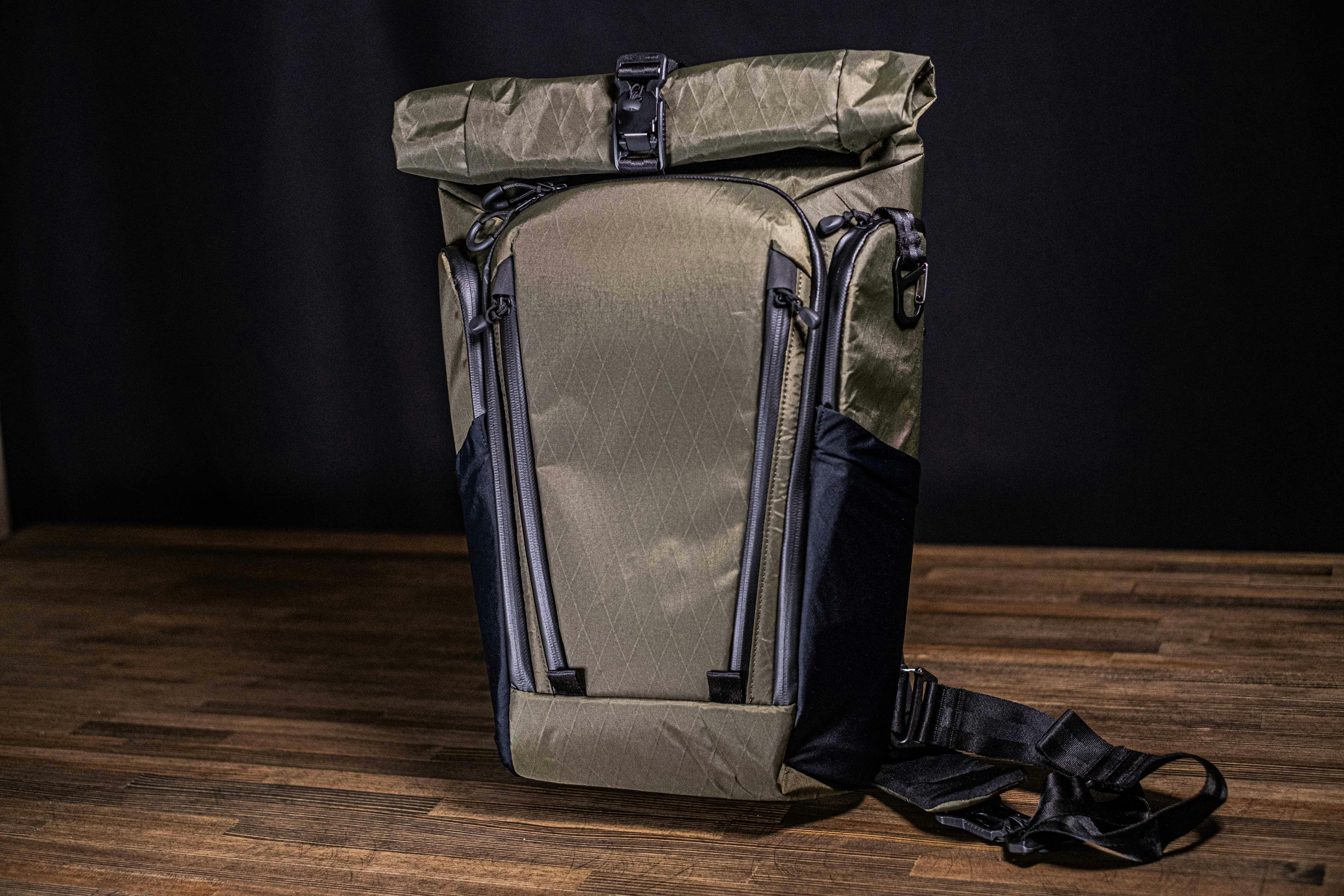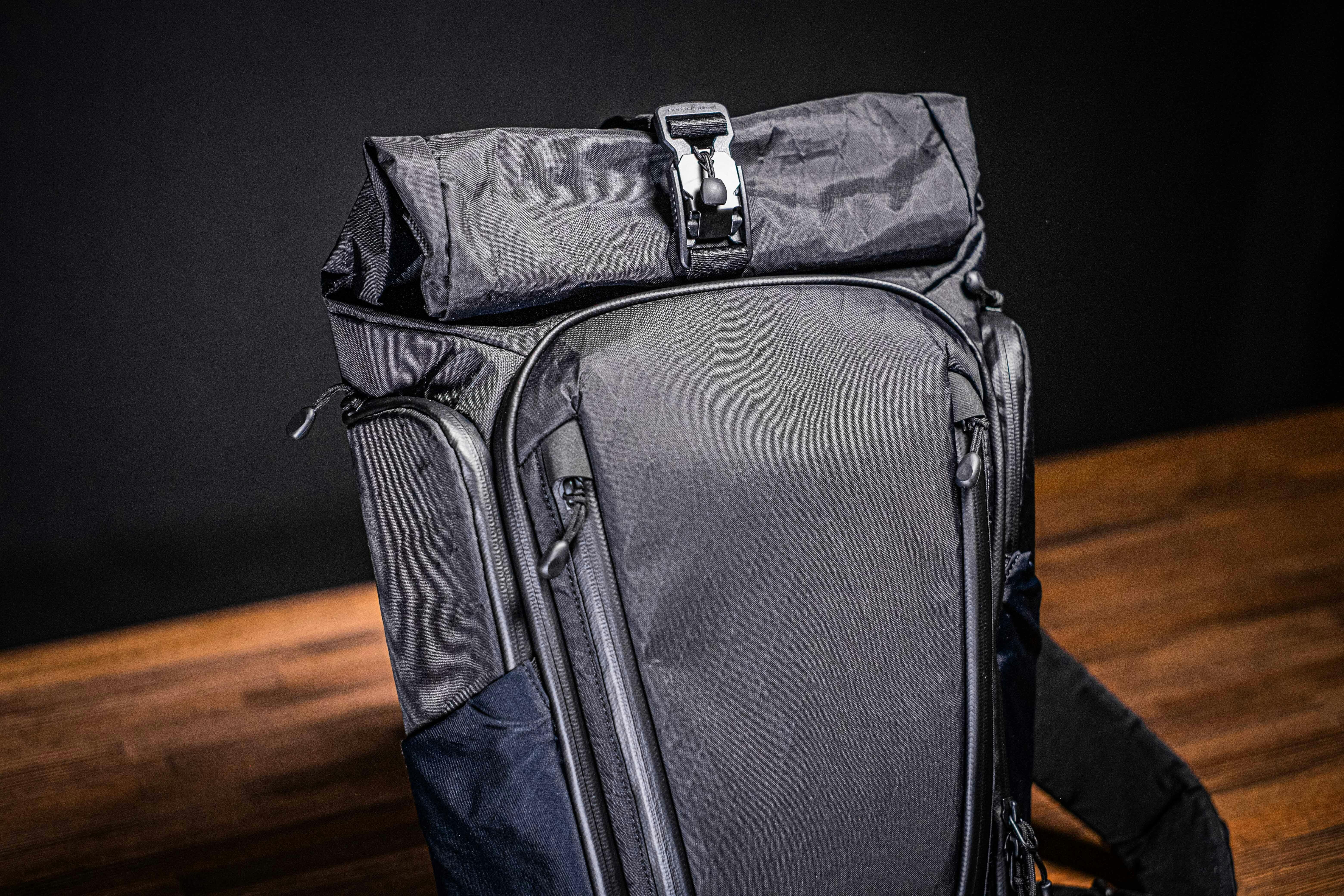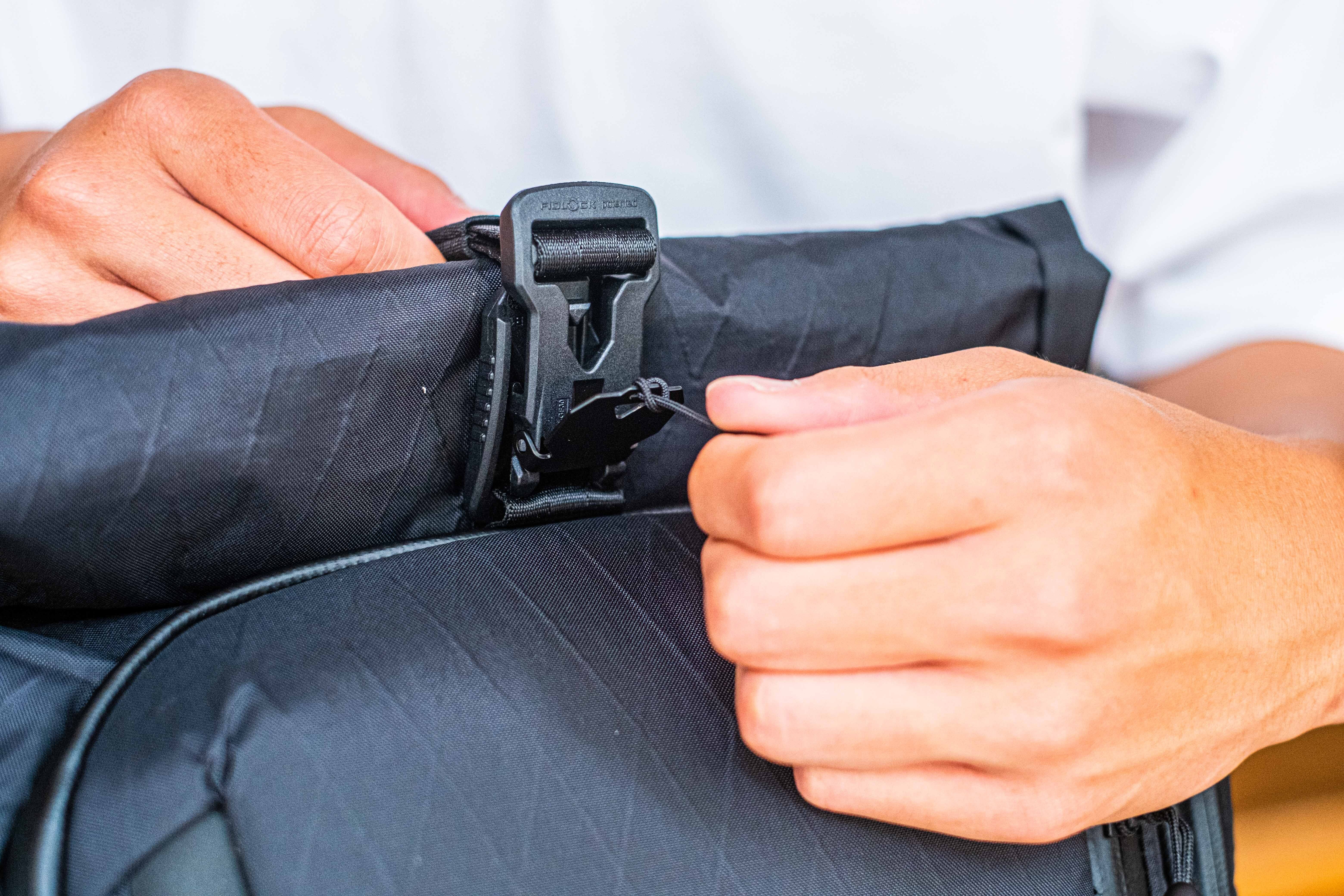 ロールトップ式のメインポケットにもV型マグネットバックルを採用し、アクセスをスムーズに。耐荷重にも優れており、意図せず口が開いてしまうことを防ぎます。