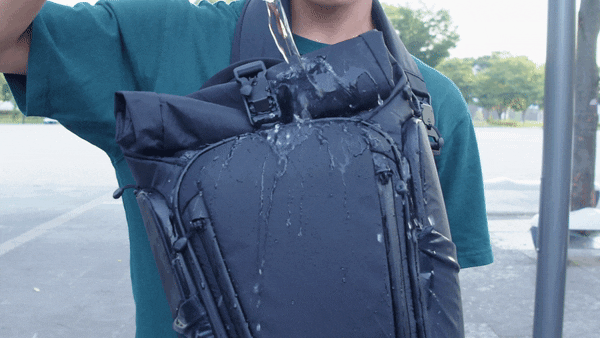 上層のナイロン生地と下層のポリエステルファブリックが圧着されていることによる、高い防水性も魅力的。耐水圧は140000mmを誇り、急な大雨でも中の荷物を濡らしません。