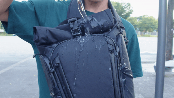 さらに、メインコンパートメントには2通りのアクセス方法を用意し、小物類の収納に便利なサイドポケットへのアクセスもスムーズ。クッション入りの独立ポケットでPCをしっかり保護し、止水ファスナーや耐水圧140000mmの素材で急な大雨にも対応します。