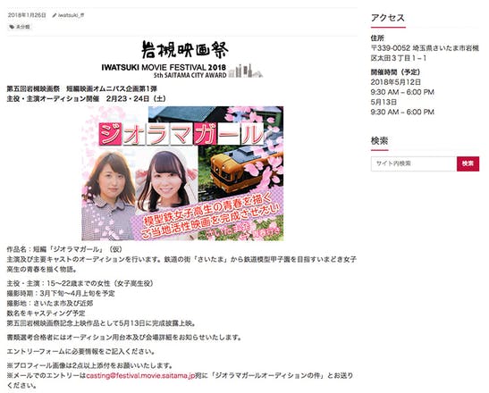 2018年5月12・13日開催の第5回岩槻映画祭で披露上映を予定しています。