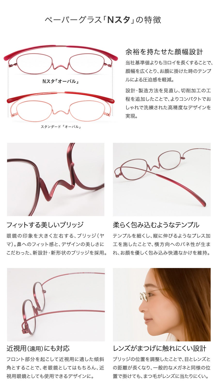 ペーパーグラスは眼鏡の街・鯖江の技術力を活かした独自の構造により、紙のように薄くフラットになる超薄型リーディンググラス(老眼鏡)です。