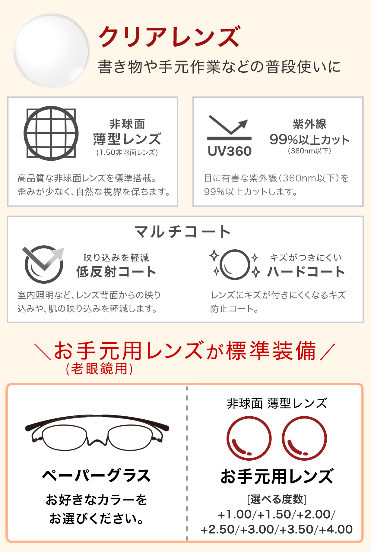 ※標準レンズ度数: +1.00、+1.50、+2.00、+2.50、+3.00、+3.50、+4.00に限ります。