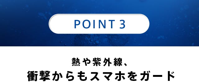 水はもちろん、紫外線や熱、落とした時の衝撃からもあなたの大事なスマホをばっちりガードします。