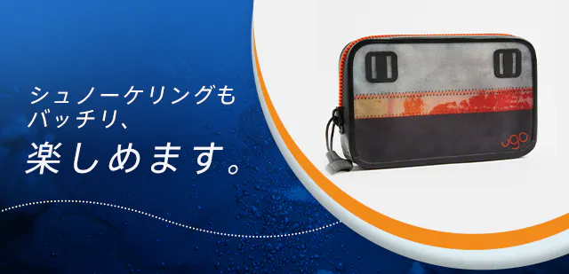 【ugo PHONE2.0】はスマホや貴重品を入れて携帯したまま、水泳やウォーターアクティビティが楽しめる完全防水ポーチです。